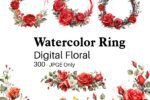 Watercolor ring floral and flower Clipart 300 – JPG Only