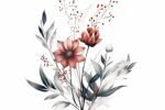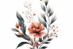 watercolor flowers with leaves on white background